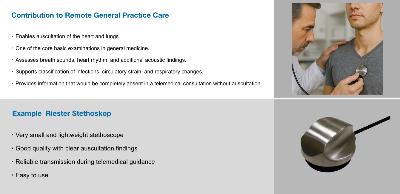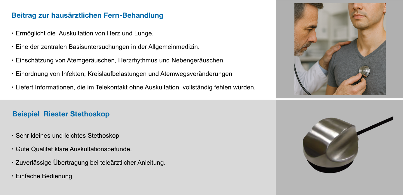 - Elektronisches Stethoskop zur Übertragung von Herz- und Lungengeräuschen für eine teleärztliche Auskultation.
