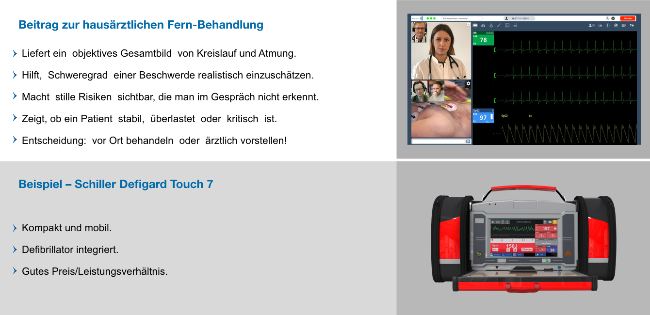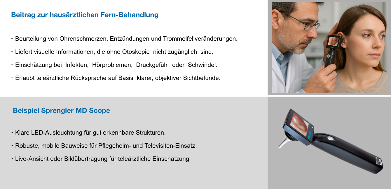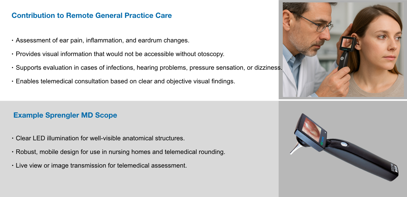 Neben den allgemein bekannten Geräten wie Blutdruckmessgerät, Pulsoximeter oder EKG kommen in der hausärztlichen Versorgung weitere Untersuchungsgeräte zum Einsatz, die seltener im Zusammenhang mit Telemedizin erwähnt werden. Einige Beispiele: